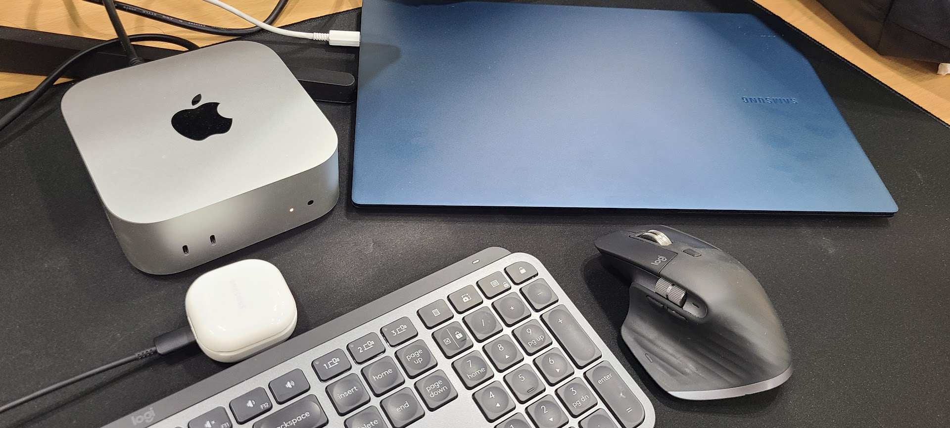회사에서 맥미니, 모니터를 제공받고 추가로 사수께서 선물이라고 준 마우스와 따로 구매한 키보드까지 나만의 작업 공간이 생겼는데, 추가적으로 노트북까지 회사에서 제공받게 되었다.